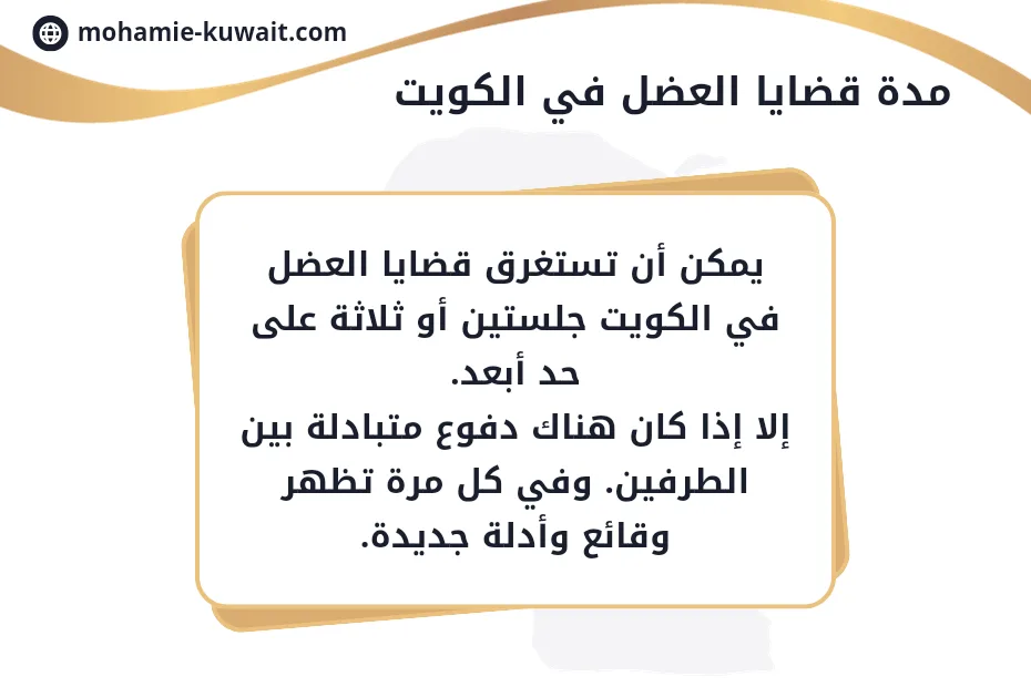 تختلق المدة التي تستغرقها قضية العضل أمام محكمة الأسرة في الكويت من قضية إلى أخرى. فعدد الجلسات يحدد مدة القضية حتى يتم الفصل بها.